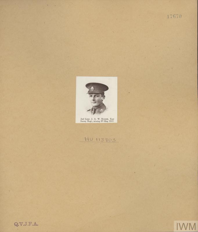 Second Lieutenant Jack Alfred Whittard Bigger. Unit: 4th Battalion, attached to 1st Battalion, East Surrey Regiment. Death: 08 May 1917 Western Front