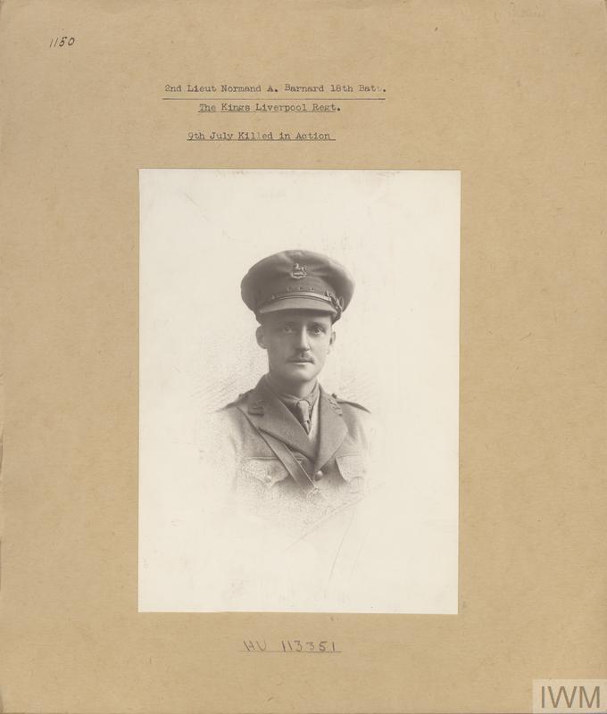 Second Lieutenant Norman Arthur Southard Barnard. Unit: 18th Battalion, the King's (Liverpool Regiment). Death: 8 July 1916, Somme, Western Front.