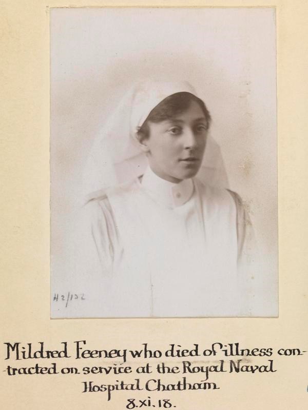 Mildred Feeney, Voluntary Aid Detachments. Died of illness contracted on duty at the Royal Naval Hospital Chatham 08 October 1918.