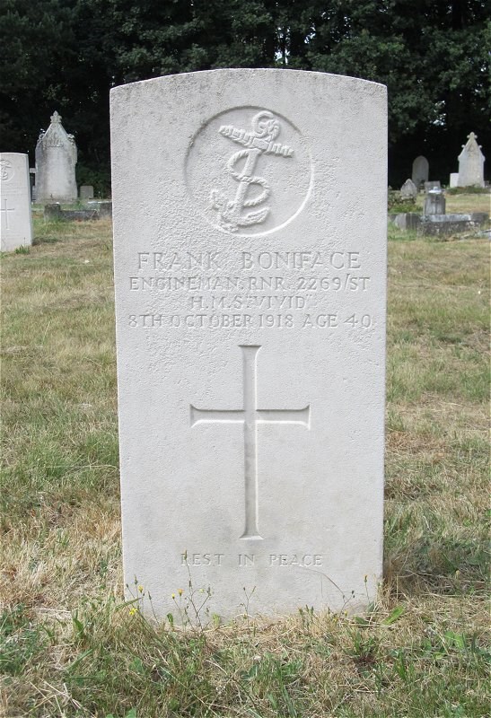 Engineman Frank Boniface 2269/ST, Royal Naval Reserve - H.M.S. "Vivid."