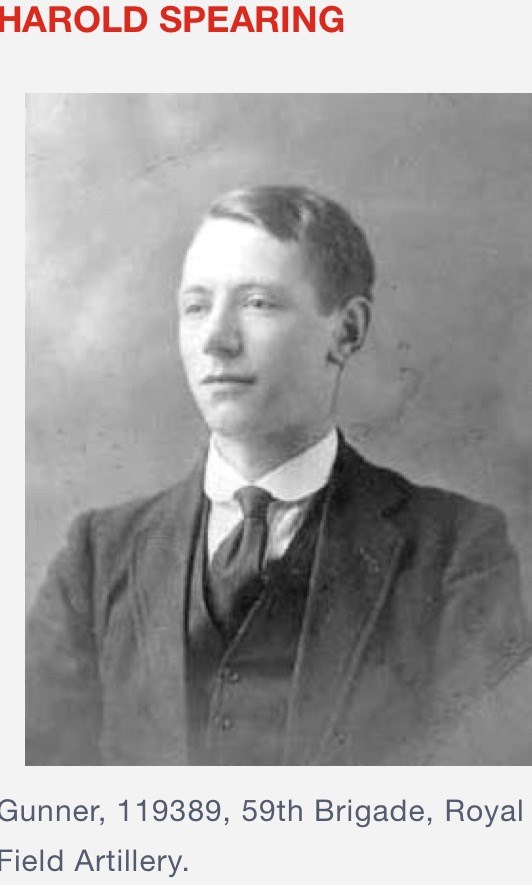 Gunner Harold Spearing 119389, Royal Field Artillery
