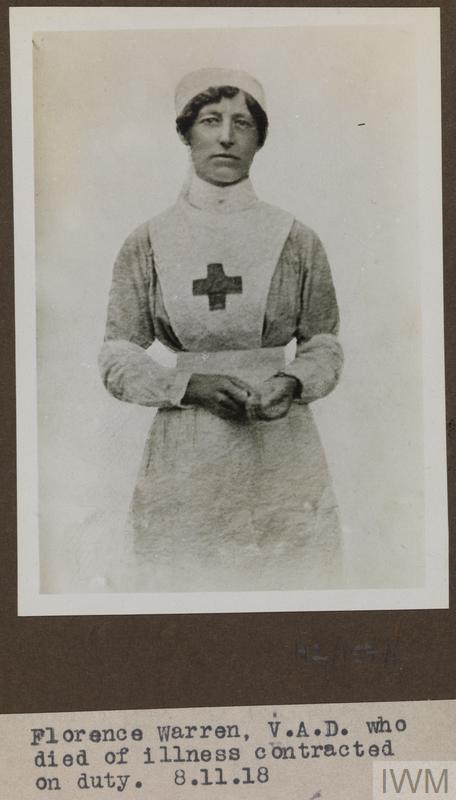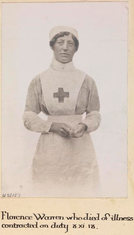 Florence Warren, Voluntary Aid Detachments. Died of illness contracted on duty 08 November 1918.