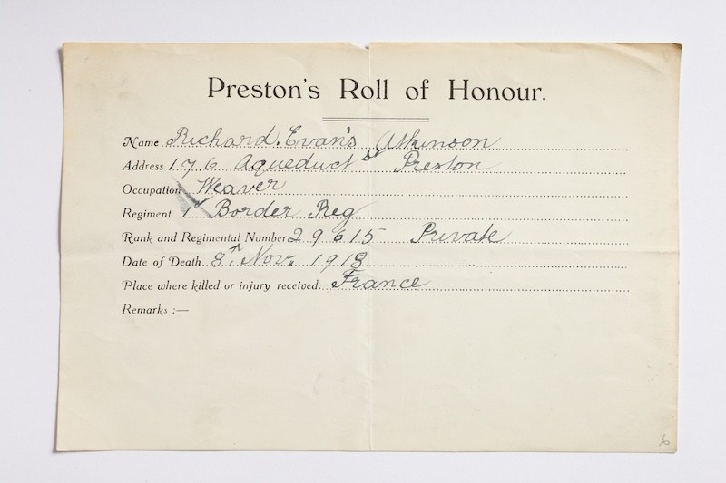 Private Richard Evans Atkinson 29615, Border Regiment