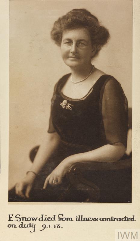 Mrs Edith Snow, Voluntary Aid Detachments. Died of illness contracted on duty 09 January 1918.