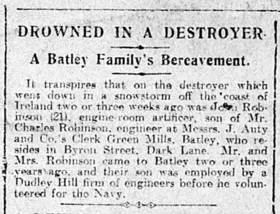 Acting Engine Room Artificer 4th Class John Robinson M27732, HMS Racoon