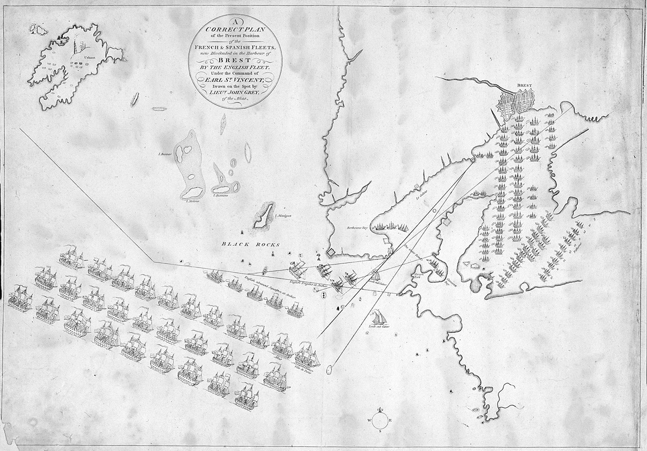 A Correct Plan of the Present Position of the French & Spanish Fleets now Blockaded in the Harbour of Brest by the English Fleet Under the Command of Earl St Vincent. Jan? 1801. Print