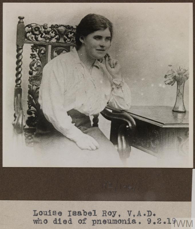 Miss Louise Isabel Roy, Voluntary Aid Detachments. Died of pneumonia 09 February 1919.