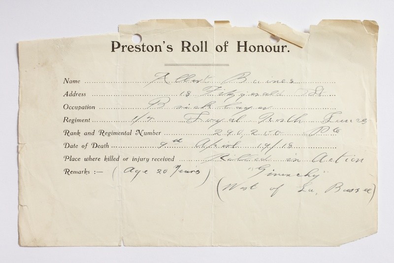 Private Albert Baines 290200, The Loyal North Lancashire Regiment