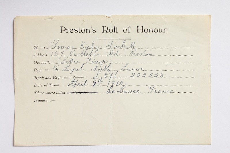 Private Thomas K Hackett 202528, Loyal North Lancashire Regiment