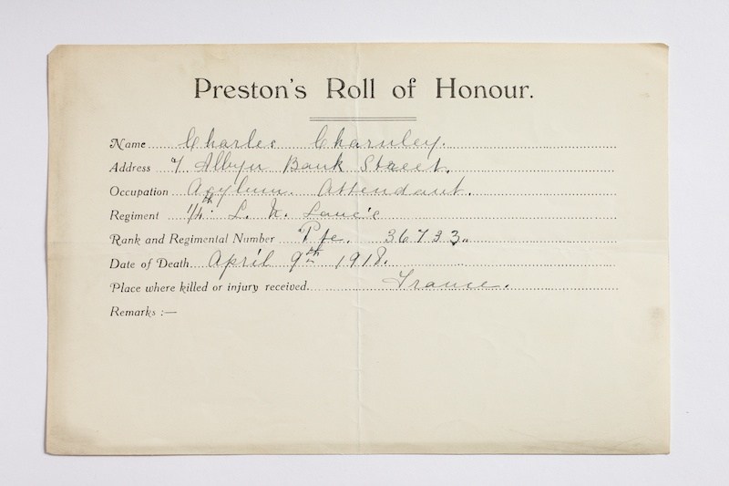 Private Charles Charnley 36733, The Loyal North Lancashire Regiment