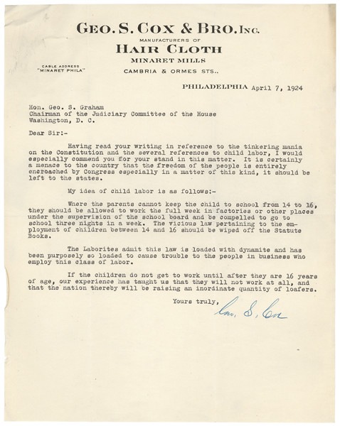 Petition Against the Proposed Child Labor Amendment, 04/09/1924