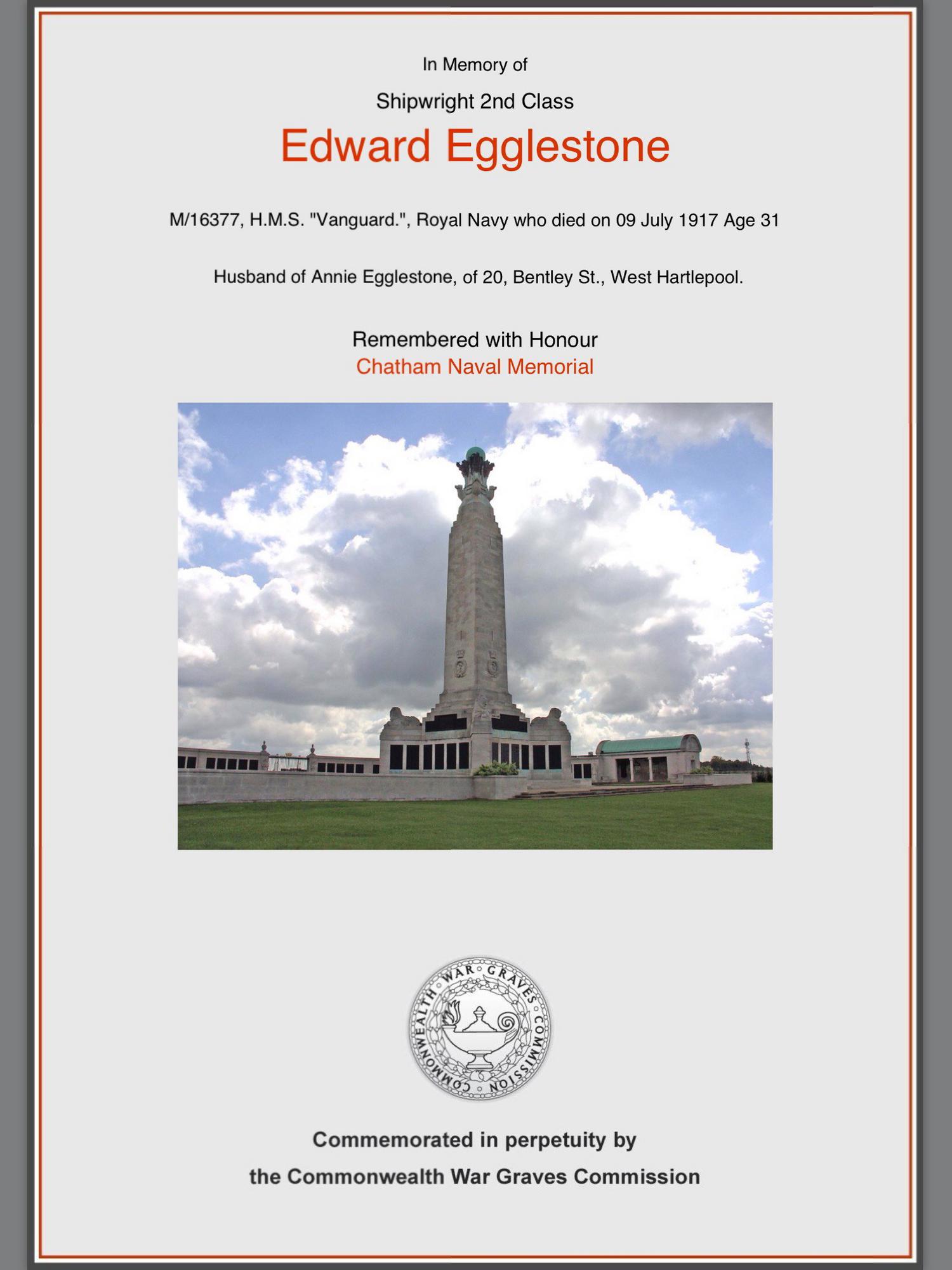 Shipwright 2nd Class Edward Egglestone M16377, HMS Vanguard