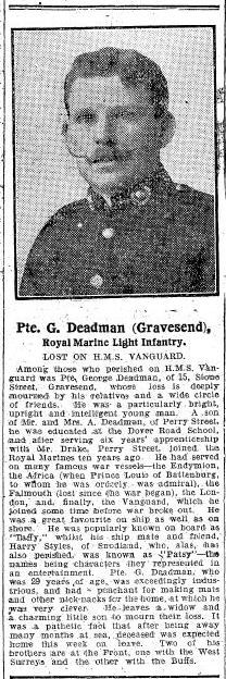 Private George Deadman 16154, 15098, Royal Marine Light Infantry - HMS Vanguard