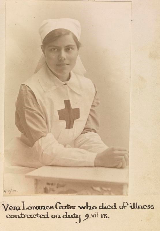 Miss Vera Lorance Carter, Voluntary Aid Detachments. Died of illness contracted on duty 09 July 1918.