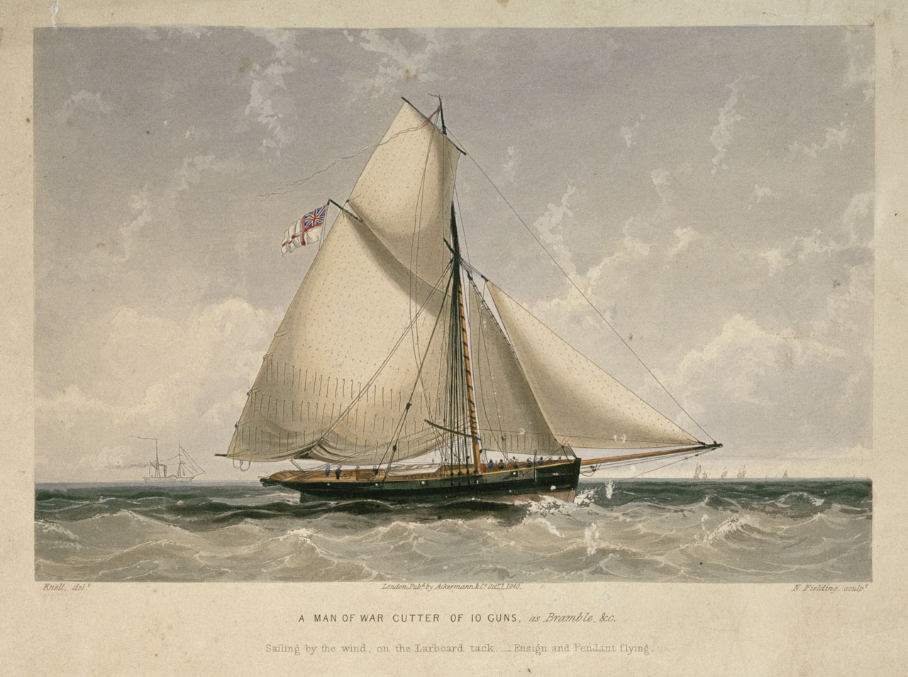 A Man of War Cutter of 10 Guns, as Bramble, &c. Sailing by the wind, on the Larboard tack - Ensign and Pendant flying. Print