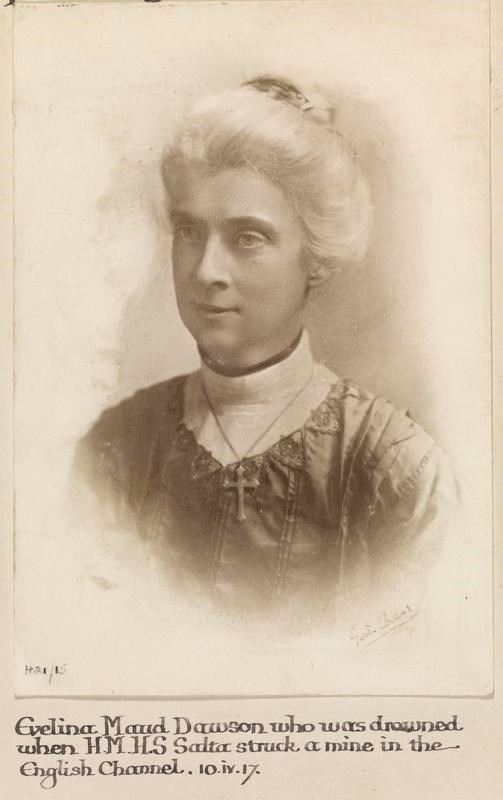 Evelina Maud Dawson, Queen Alexandra's Imperial Military Nursing Service Reserve. Drowned when the Hospital Ship Salta struck a mine in the English Channel 10 April 1917.