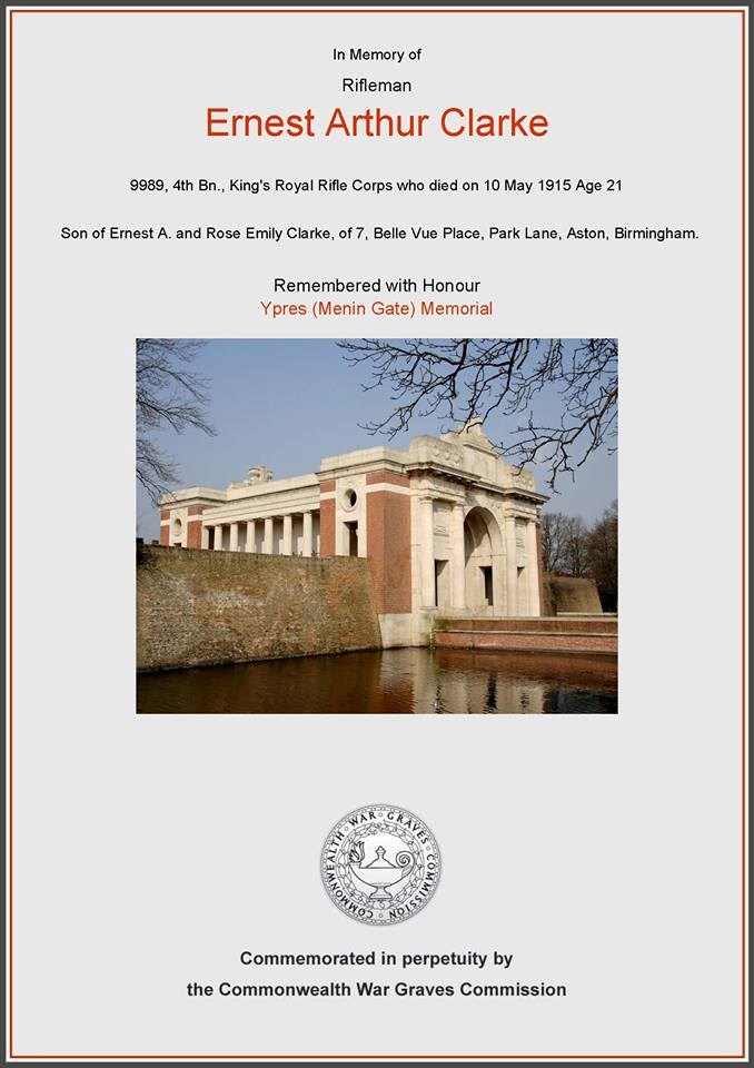 Private Ernest Arthur Clarke 9989, King's Royal Rifle Corps