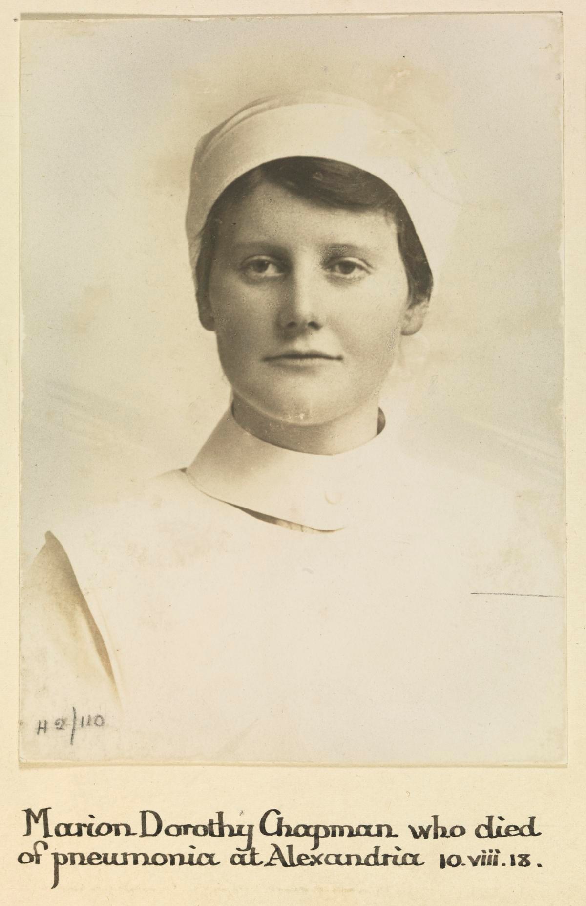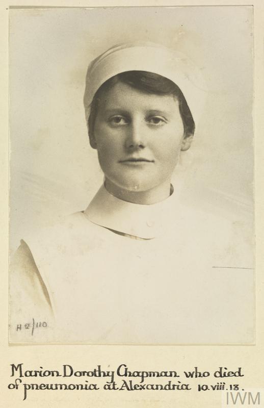 Nurse Marion Dorothy Chapman, Voluntary Aid Detachments. Died of pneumonia at Alexandria 10 August 1918.