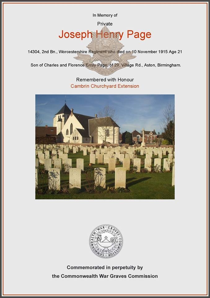 Private Joseph Henry Page 14304, Worcestershire Regiment