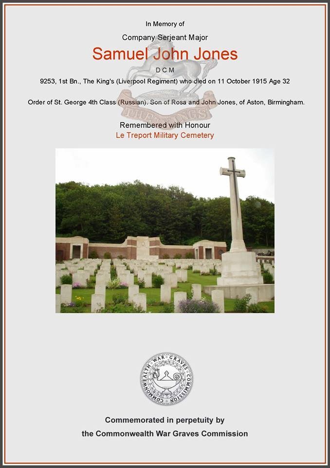Company Serjeant Major Samuel John Jones 9253, The King's (Liverpool Regiment)