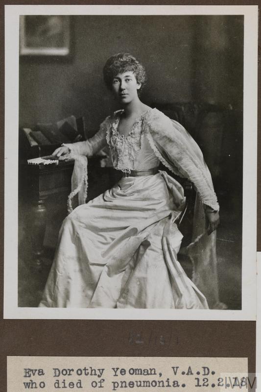 Miss Eva Dorothy Yeoman, Voluntary Aid Detachments. Died of pneumonia 12 February 1918.