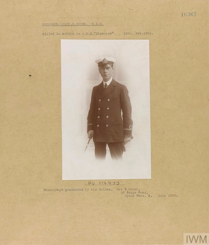 Engineer Lieutenant David Brown. Unit: Mercantile Fleet Auxilliary 'Eleanor', Royal Naval Reserve. Death: 12 February 1918 At sea