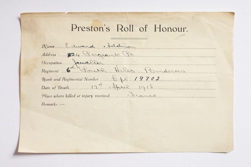 Private Edwin Gilder 35145. Unit: 4th Battalion, Yorkshire Regiment. Death: Between 9 April and 12 April 1918, Western Front.