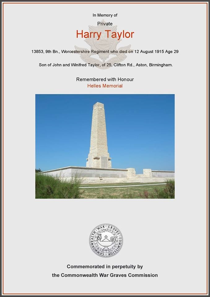 Captain Harold L I Spielmann. Unit: 10th Battalion, Manchester Regiment. Death: 12 August 1915 Killed in action at Gallipoli Gallipoli/Dardanelles