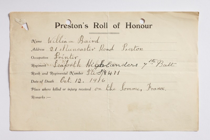 Private William Moran 34516. Unit: 17th Battalion, Manchester Regiment. Death: 12 October 1916 Missing Western Front
