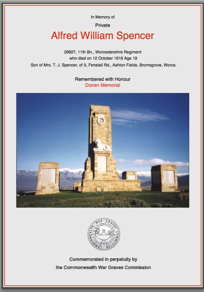 Private Alfred William Spencer 29927, Worcestershire Regiment