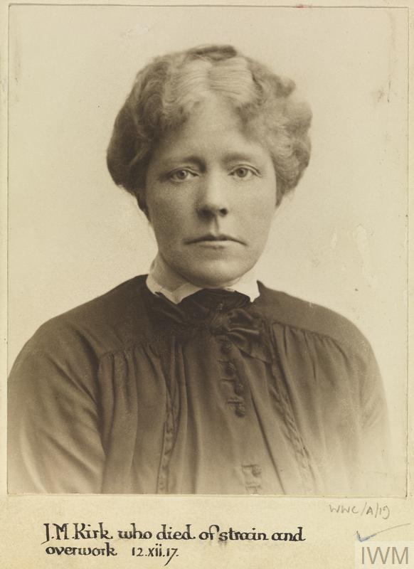 J M Kirk, Voluntary Aid Detachments. Died of strain and overwork 12 December 1917.