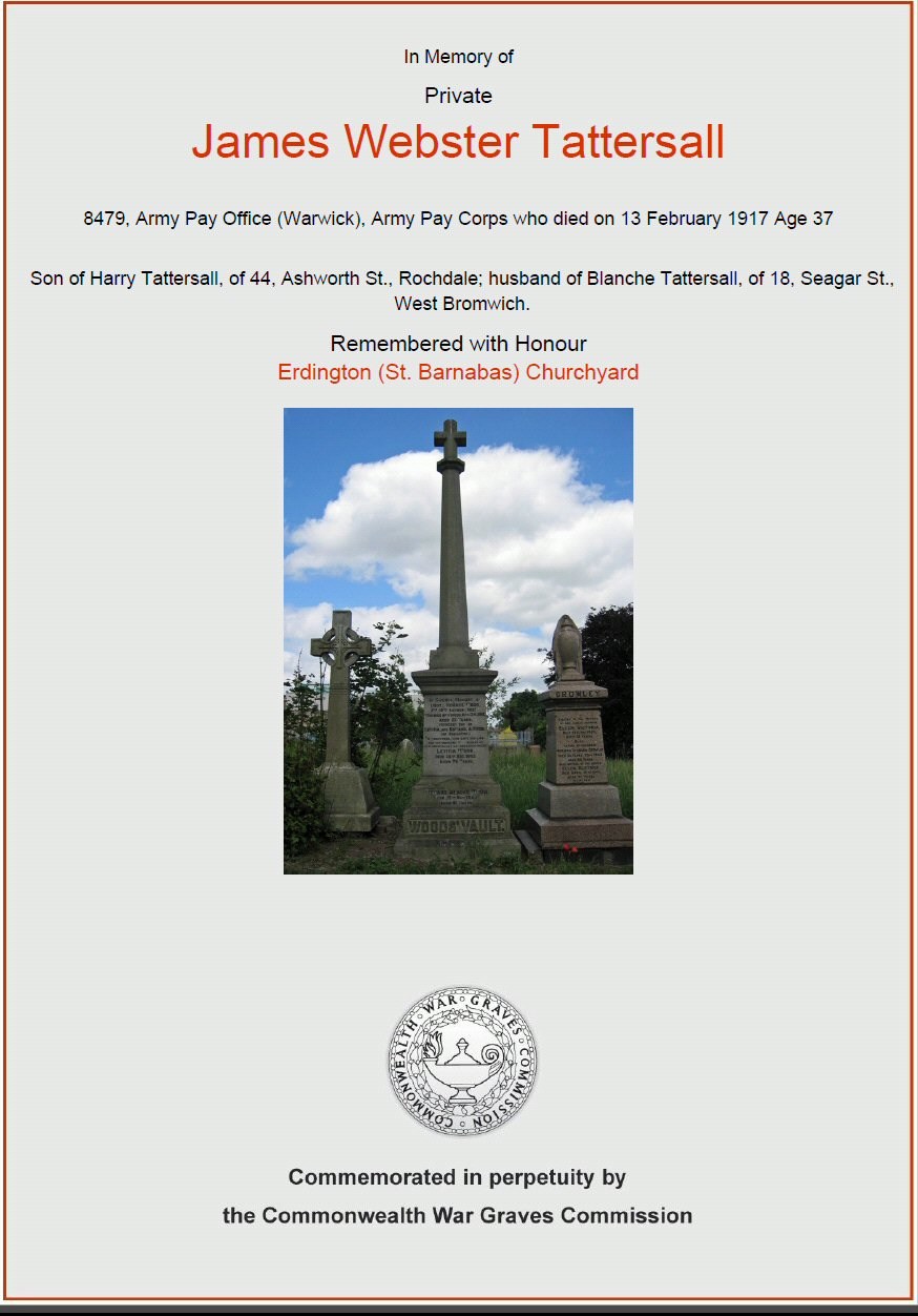 Private James Webster  Tattersall 8479, Army Pay Corps