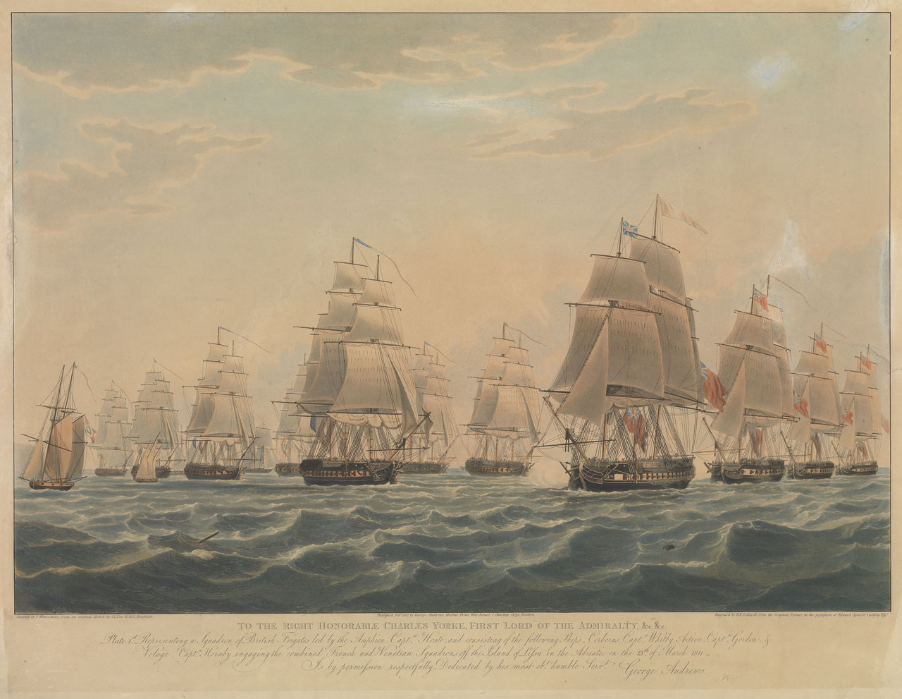 The Battle of Lissa, 13 March 1811; the British line after wearing to renew the action. A scene from the Battle of Lissa, part of the Adriatic campaign of the Napoleonic Wars. The battle for possession of the strategically important island of Lissa (also