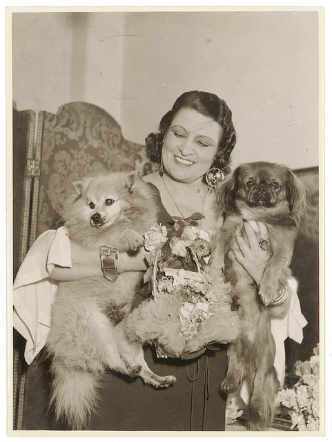 Gladys Moncrieff with her Pekingese and Pomeranian dogs on her birthday, 13 April 1937, by Sam Hood