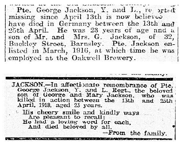 Private William H Foster 3/3867, York and Lancaster Regiment