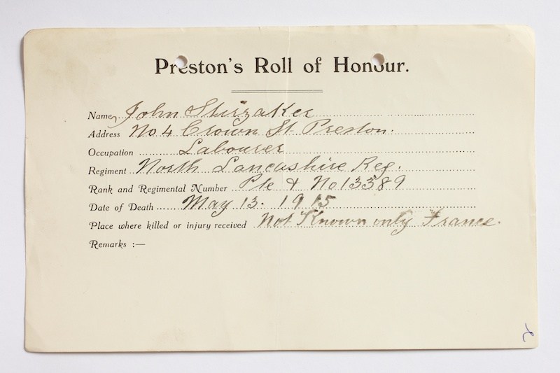 Private John Stirzaker 13389, The Loyal North Lancashire Regiment