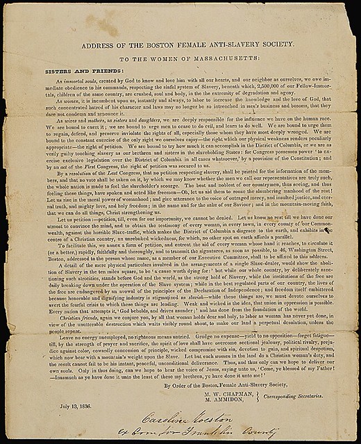 Address of the Boston Female Anti-Slavery Society, 07/13/1836