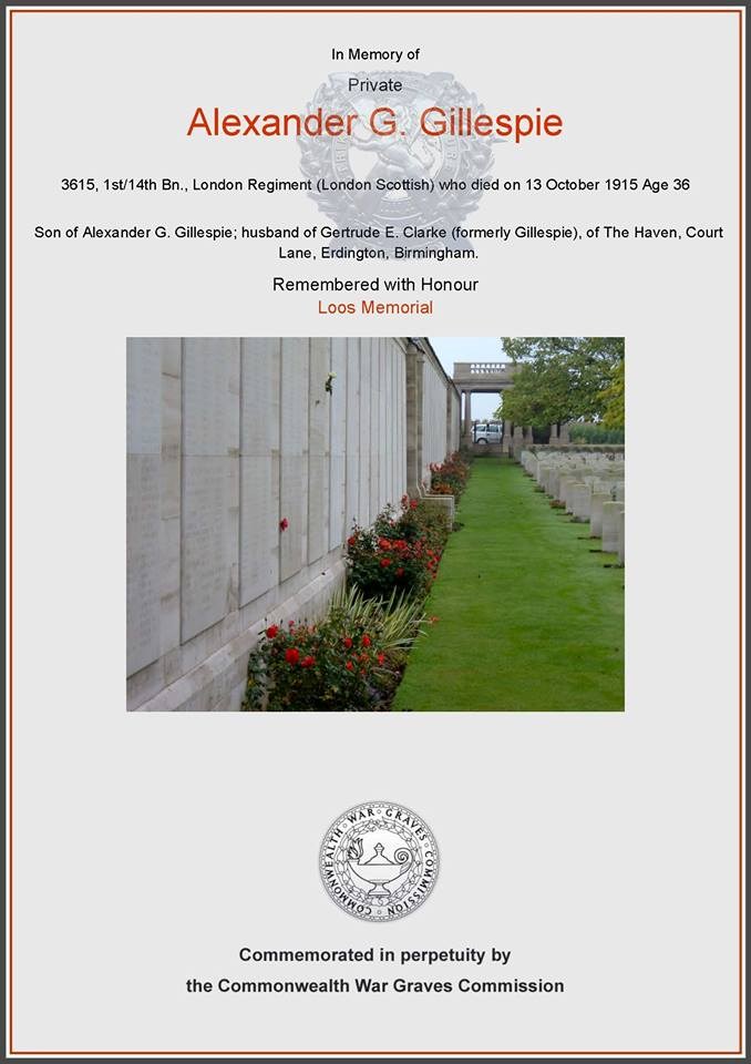 Private Alexander George Gillespie 3615, 14th London Regiment