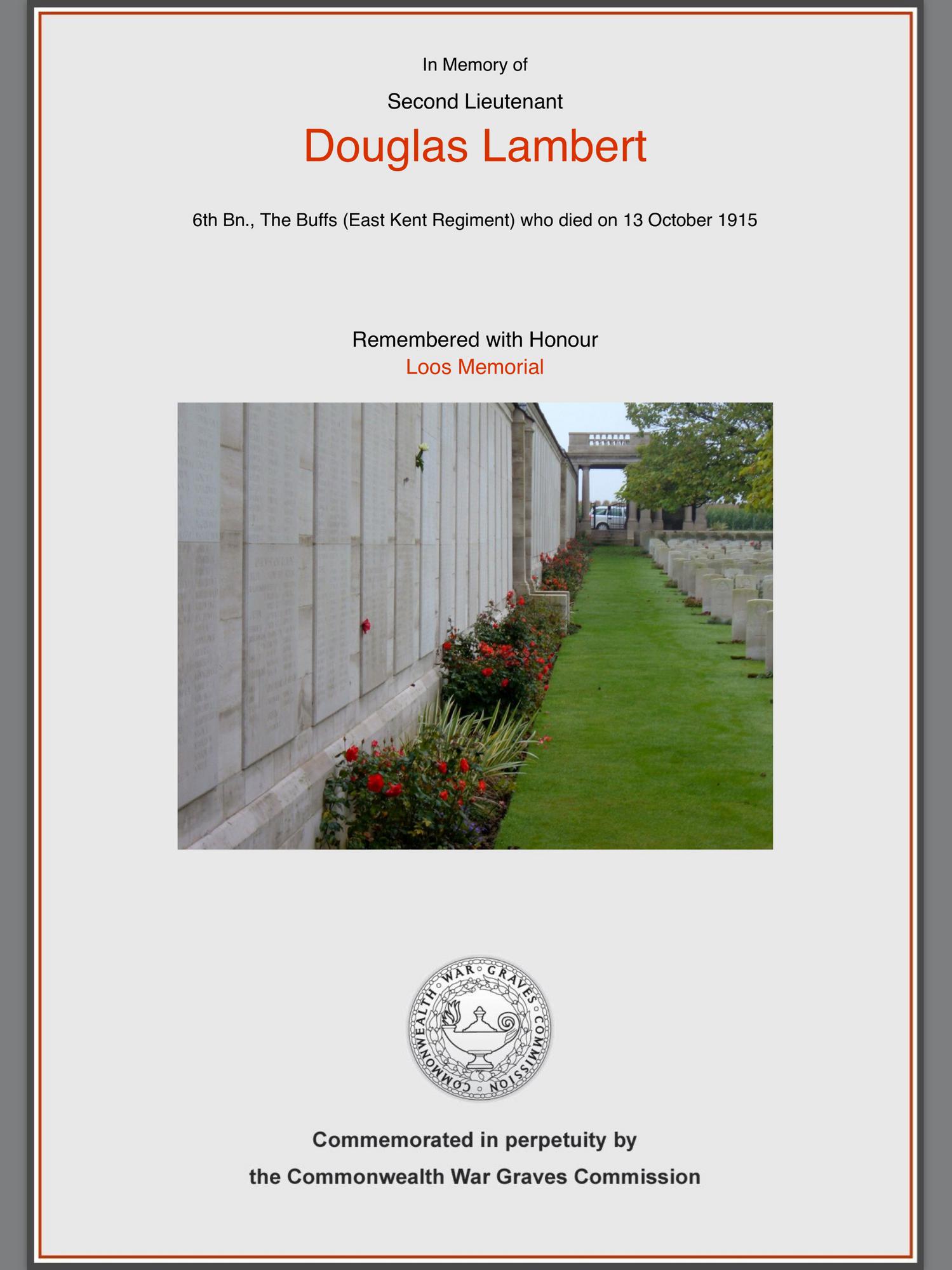 Second Lieutenant Douglas Lambert , East Kent Regiment