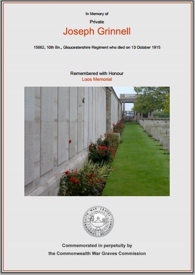 Private Joseph Grinnell 15662, Gloucestershire Regiment
