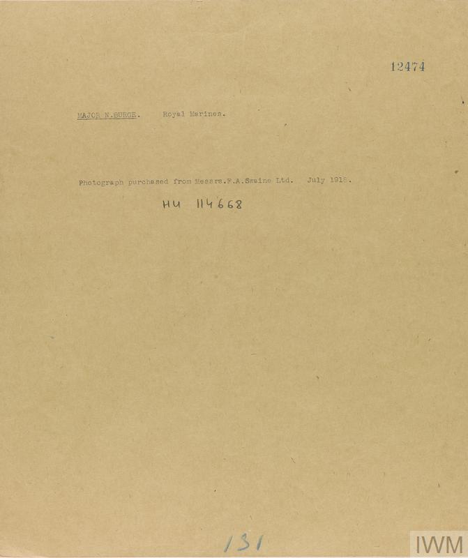Brevet Lieutenant Colonel Norman Ormsby Burge. Unit: Nelson Battalion, Royal Naval Division, Royal Marine Light Infantry. Death: 13 November 1916, Beaumont Hamel, Somme, Western Front.