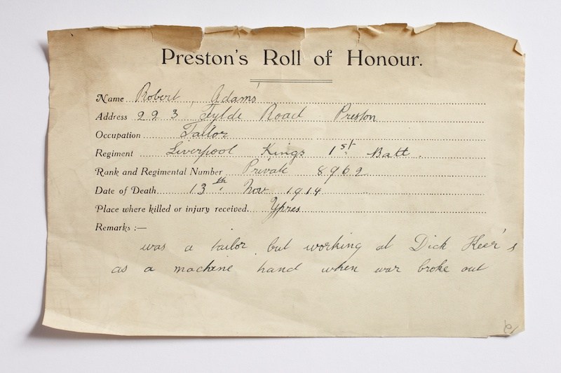 Private Robert Adams 8962, The King's (Liverpool Regiment)