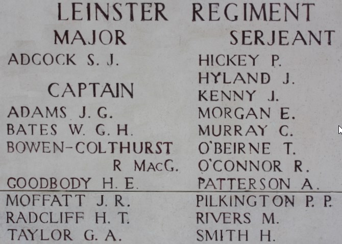 Captain George Whalley Robinson. Unit: 1st Battalion, Leinster Regiment. Death: 14 February 1915 St Eloi Western Front