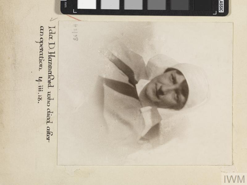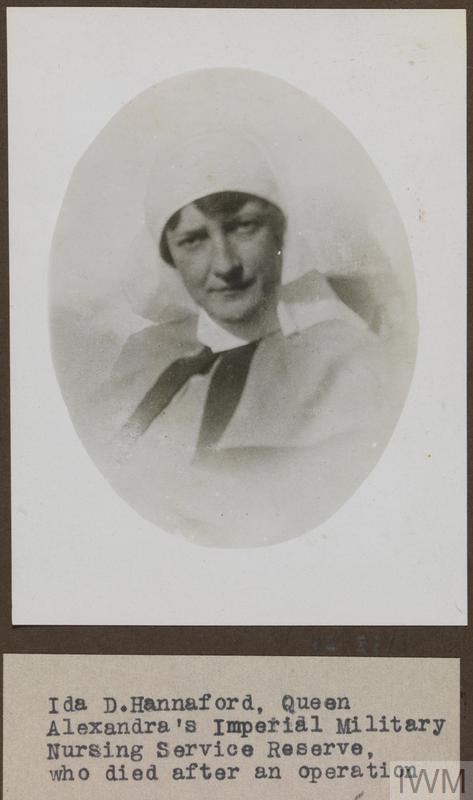 Staff Nurse Ida D Hannaford, Queen Alexandra's Imperial Military Nursing Service Reserve. Died after an operation 14 March 1918.