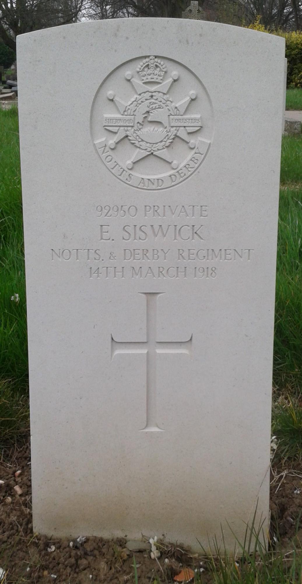 Private Ernest Siswick 92950, Sherwood Foresters (Nottinghamshire and Derbyshire Regiment)