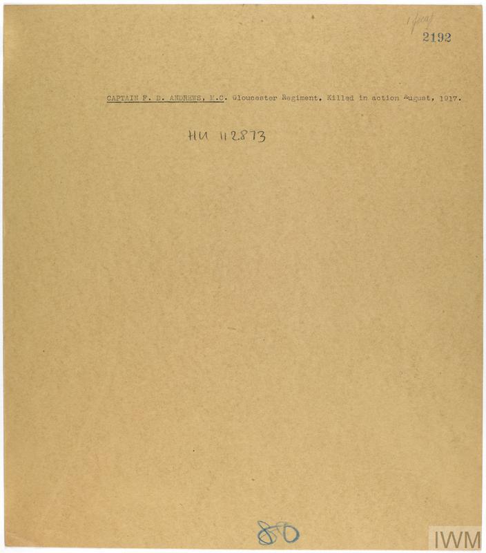 Captain Frederick Dudley Andrews MC. Unit: 1st/4th Battalion, Gloucestershire Regiment. Death: 14 August 1917 Western Front