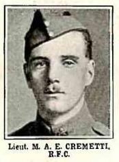 Lieutenant M A E Cremetti DCM. Serial number: C301. Unit: Cyclist Battalion, Royal Engineers, attached to Royal Flying Corps. Death: 14 August 1917