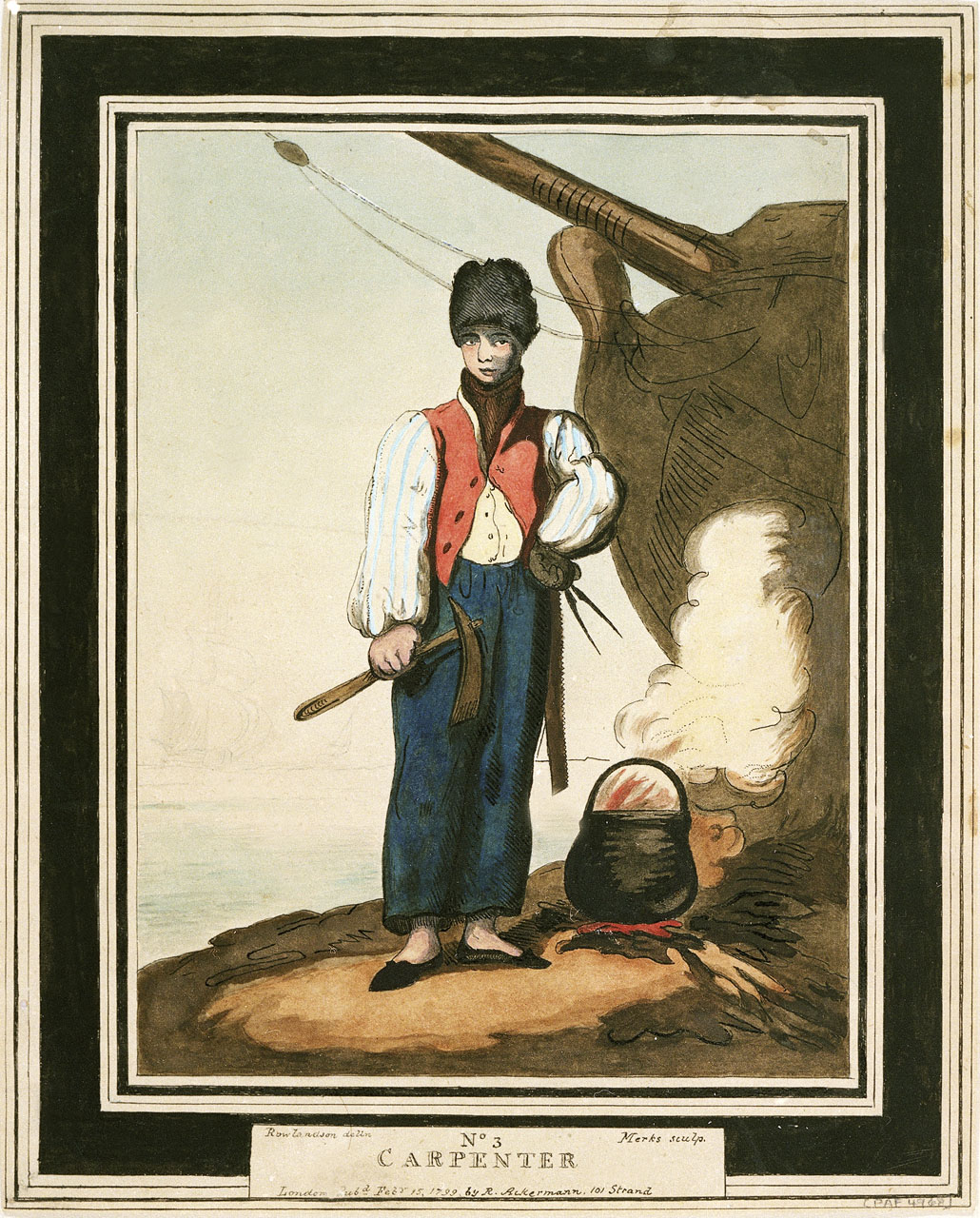 Carpenter. No.3.; Hand-coloured.  Depicts clothing, outerwear: dress, carpenter's [Royal navy]