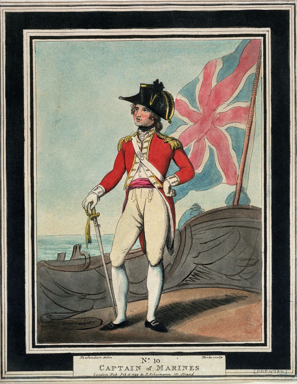 Captain of Marines. No.10.; Hand-coloured.  Depicts clothing, outerwear: uniform, captain of marine's [Royal navy]