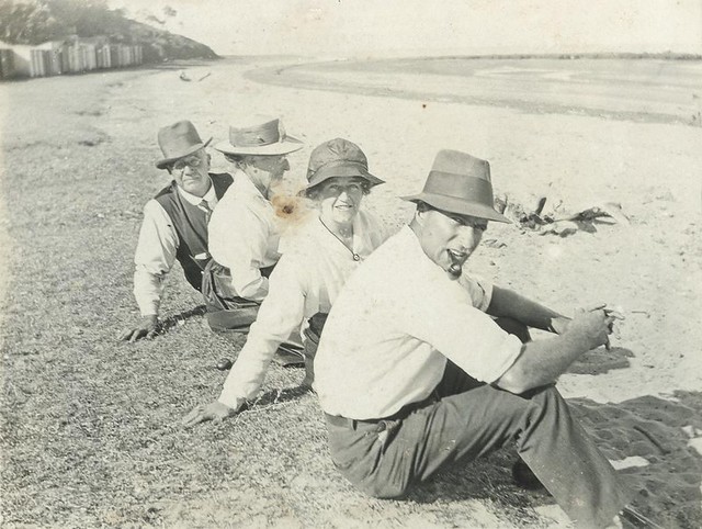 Beside the sea at Redcliffe Beach, Queensland, ca. 1917